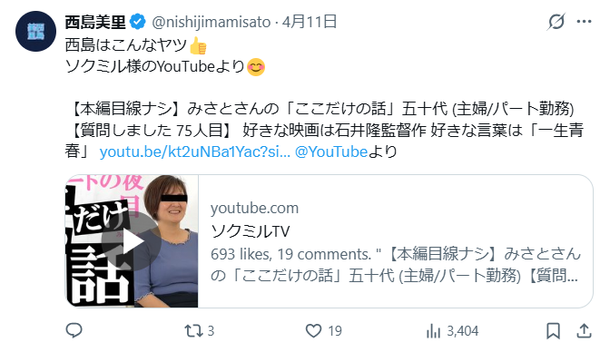今回の記事はアラフィフ熟女・西島美里(にしじまみさと)さんをレビュー。